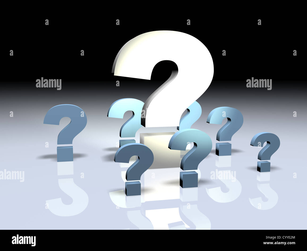 ein großes Fragezeichen, umgeben von kleineren 3D Render Illustration Stockfotografie - Alamy